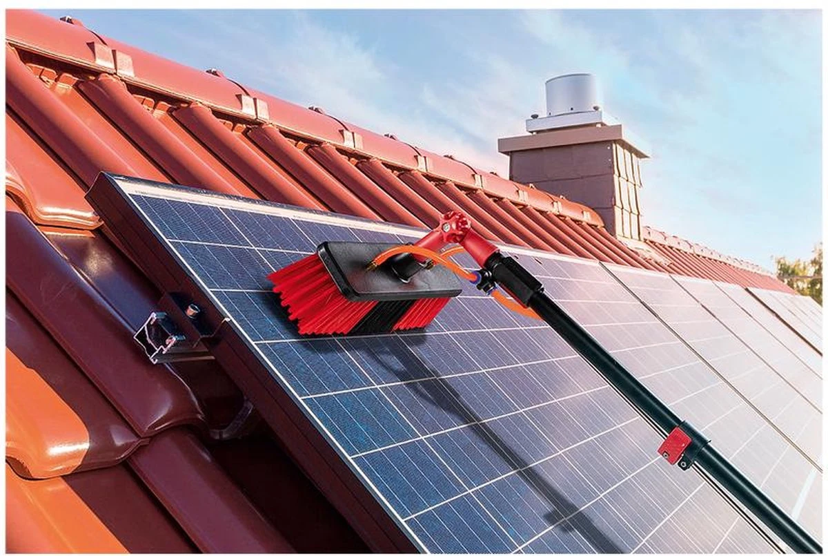 De uitschuifbare telescoopsteel met verstelbare borstel is handig voor bijvoorbeeld het reinigen van je zonnepanelen, overkapping, de gevel of je ramen. Geen enkel probleem voor deze telescoopsteel met borstel. Door de lengte van 4,6 meter en kantelbare borstel kan je op elke plek makkelijk bij. Sluit hem gemakkelijk aan op je tuinslang en maak alle plekken die voorheen onmogelijk te bereiken waren nu goed schoon.